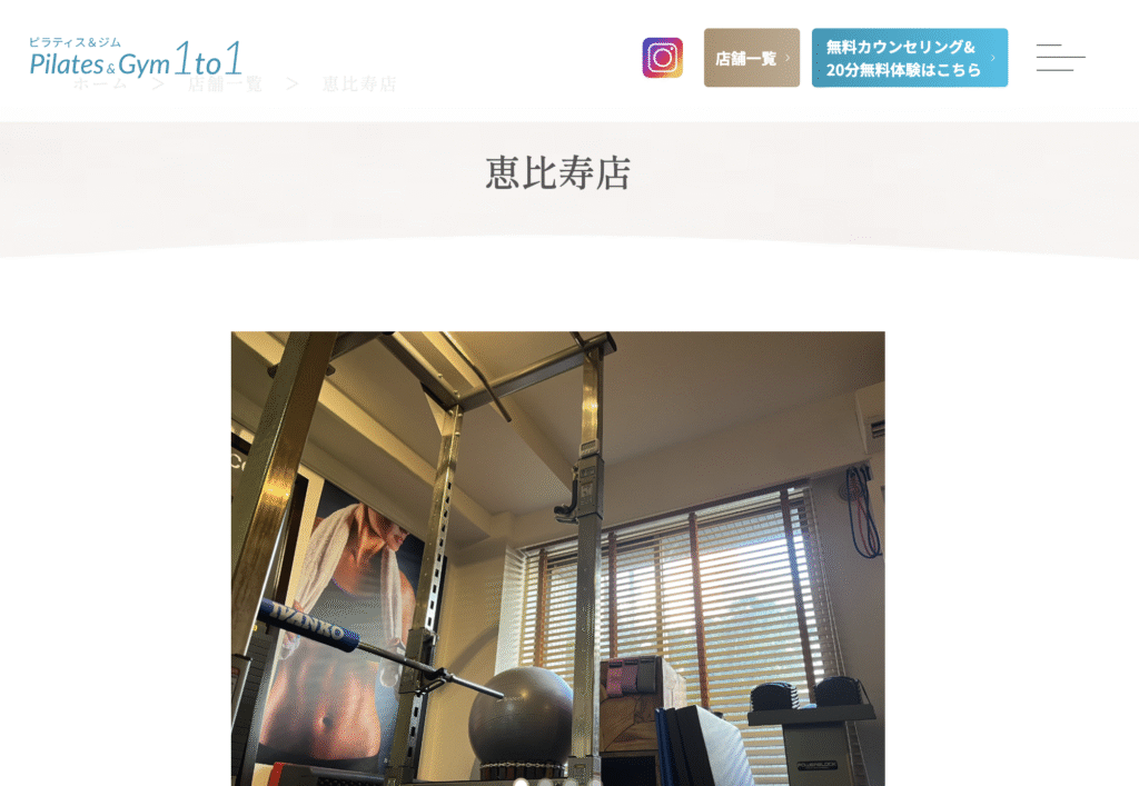 | 店舗名 | ピラティス&ジム 1to1 恵比寿店 |