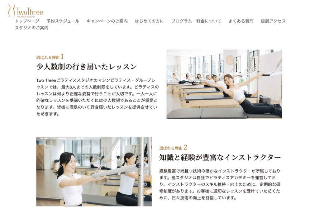 身体に痛みがあったり、術後のリハビリ目的の方・ピラティス経験初心者の方におすすめのコースや、インナーマッスルを鍛えたい、ダイエットしたい方のコースも一人一人に合わせて考えてくれるので理想の自分に近づけることが可能です。