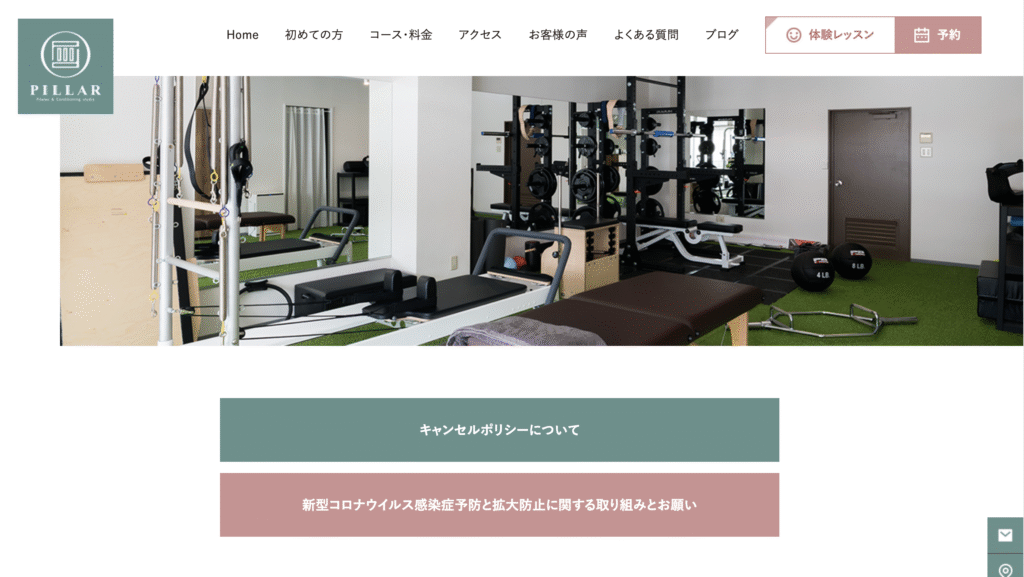 1回で変化を感じられるピラティススタジオとしても口コミで人気が広がっており、迷っているなら、まずは体験で一歩踏み出してみましょう。入会金や事務手数料がないもの珍しく初期費用を抑えたい方に適しています。