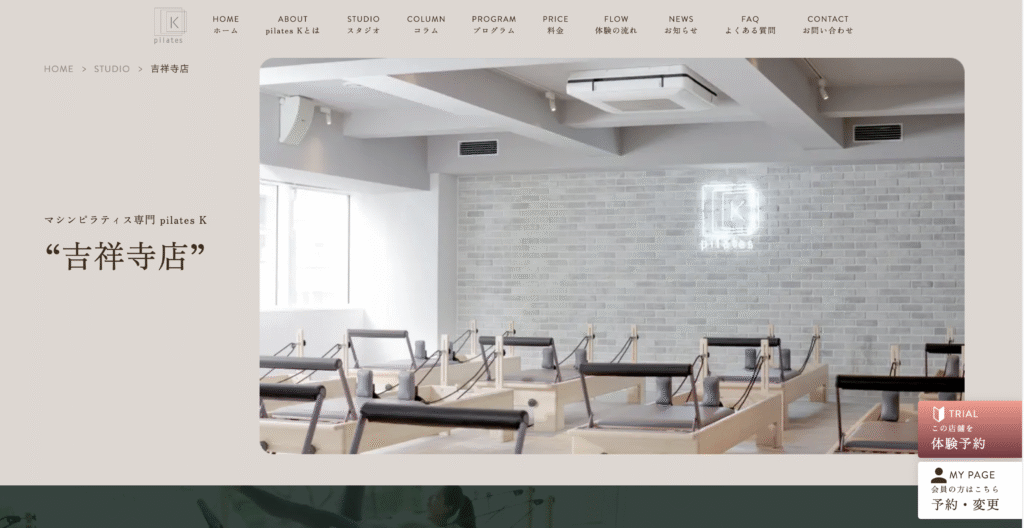 引用元:https://pilates-k.jp/studio/tokyo/kichijoji