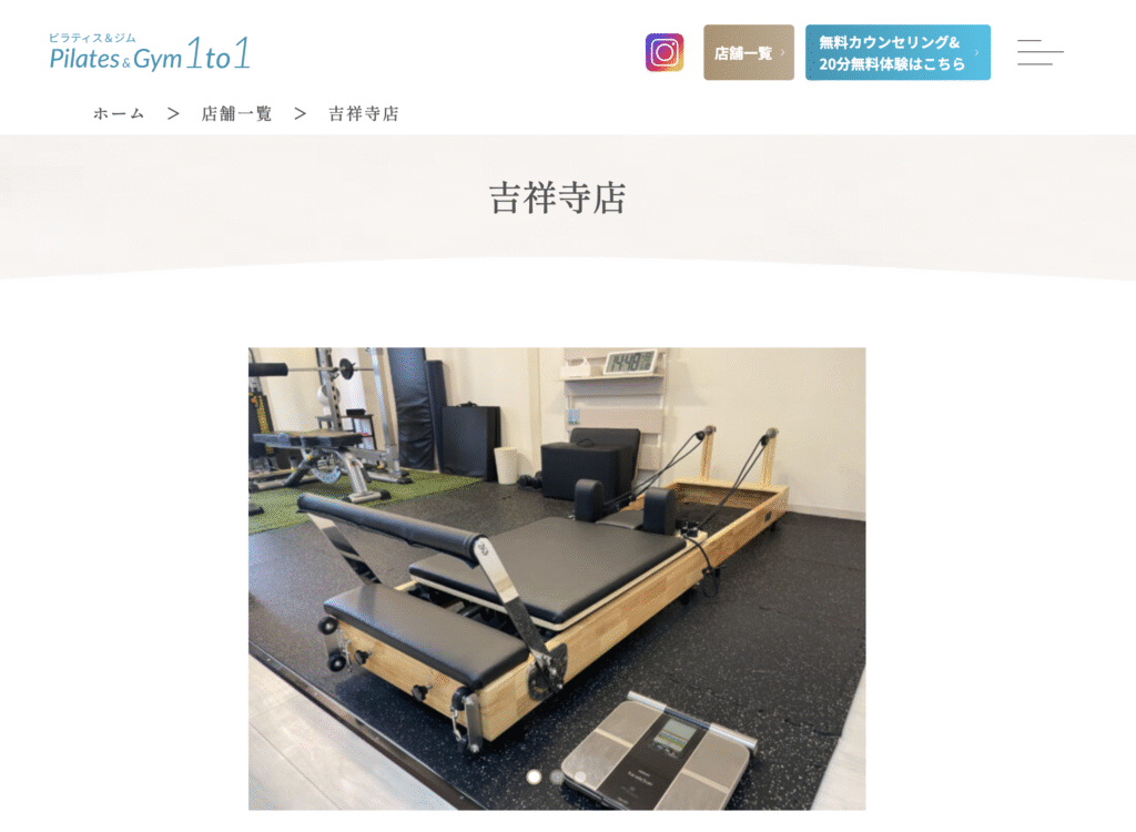 | 店舗名 | ピラティス&ジム1to1 吉祥寺店 |