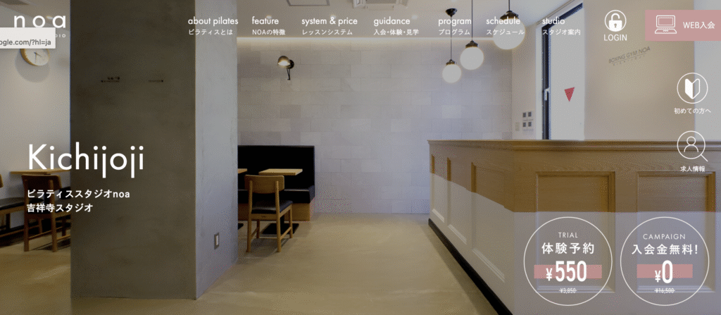 PILATES STUDIO noa 吉祥寺スタジオの体験予約はこちらから
