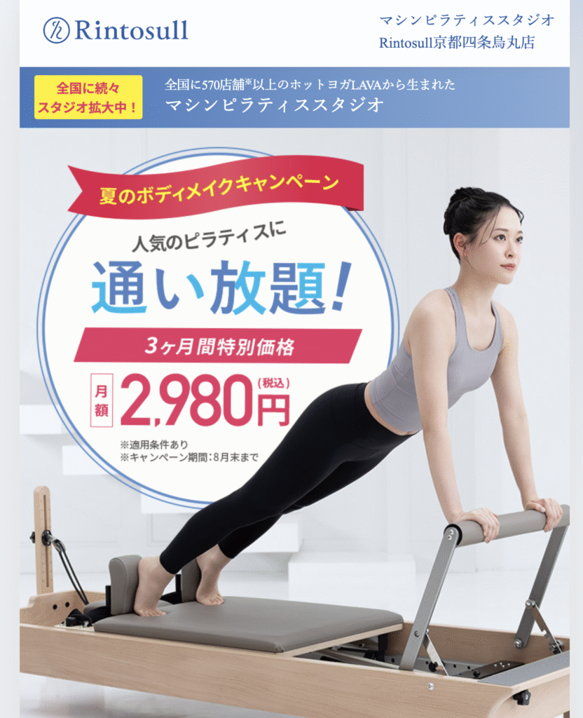 | Rintosull 京都四条烏丸 | 月4回 8,800円 ※グループ |