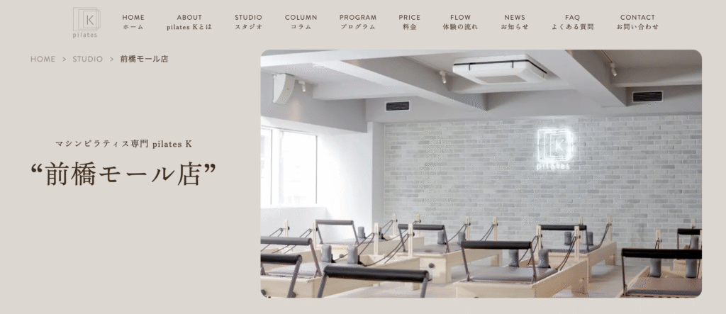 引用元:https://pilates-k.jp/studio/gunma/maebashi