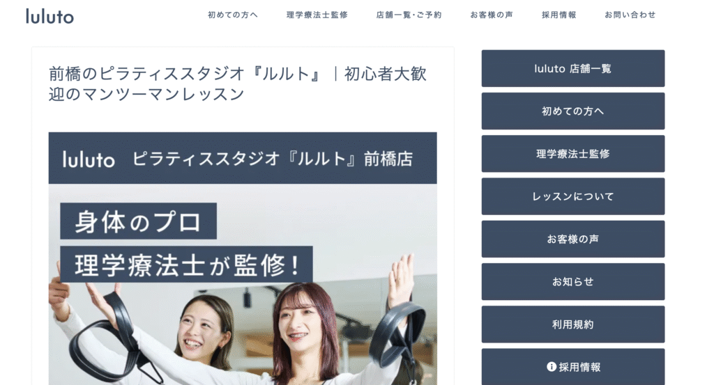 引用元:https://luluto.kabushikigaisya-rigakubody.co.jp/tenpo/pilates_maebashi/