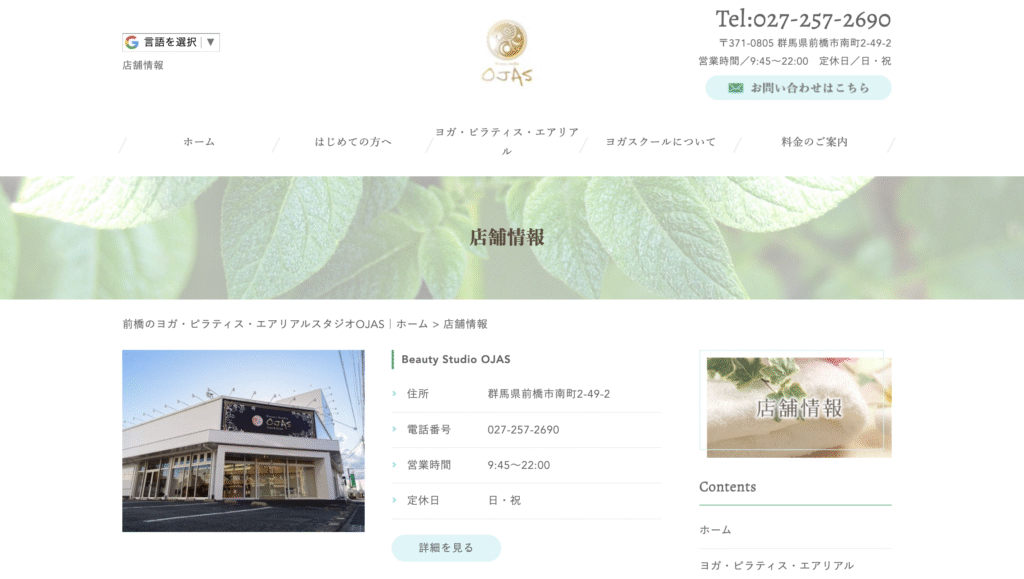 | 店舗名 | BeautyStudio OJAS ヨガ前橋店 |