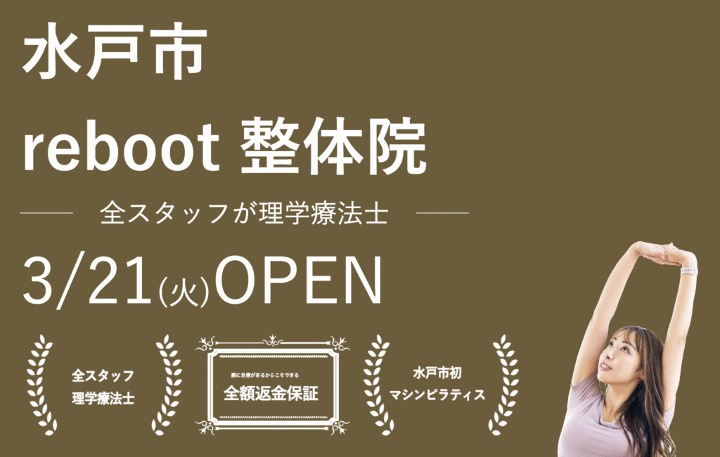 - 水戸のパーソナルマシンピラティスで最安はマシンピラティス整体院reboot水戸店