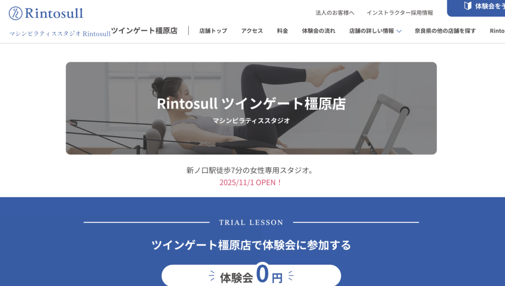 引用元:https://luluto.kabushikigaisya-rigakubody.co.jp/tenpo/pilates_kashihara/