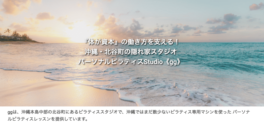 Pilates Studio ggは、北谷町にある完全パーソナル制のマシンピラティス専門スタジオです。最大の特徴は、一人ひとりの体の状態や目的に合わせた完全オーダーメイドのプログラム。インストラクターは豊富な資格を持ち、産後ケア、姿勢改善、アスリートのパフォーマンス向上など、多岐にわたるニーズに対応します。さらに、ベビーサークルを備えているため、小さなお子様を連れての受講が可能。育児中でも「自分のための時間」を安心して確保できます。