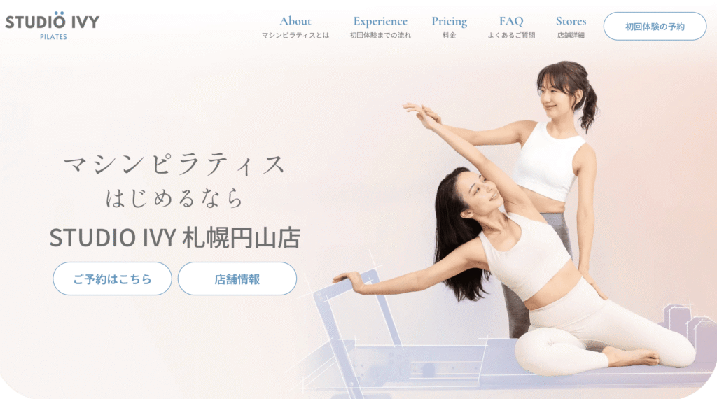 札幌・円山公園駅から徒歩7分という好立地にある STUDIO IVY 札幌円山店 は、「パーソナル専門マシンピラティス」を掲げ、完全マンツーマンで機械(リフォーマー等)を使ったオーダーメイドレッスンを提供しています。