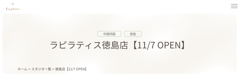 | 店舗名 | ALEXY Pilates Studio 徳島北島店 |
