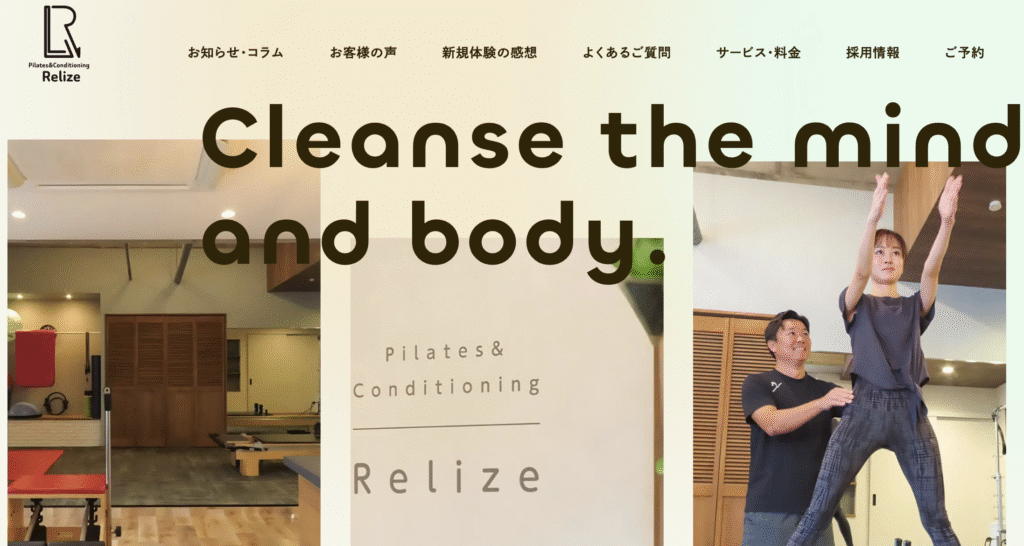 運動だけでなく、リラクゼーションを組み合わせた独自のアプローチを採用しており、身体の疲れやストレスが抜けにくい人にとって理想的な環境が整っています。レッスンはやさしい運動設計が多く、マシンピラティス・マットピラティス・ゆるやかな調整系エクササイズを通して、身体の強ばりをほぐしつつ、必要な筋力を無理なく引き出していくのが特徴のスタジオです。