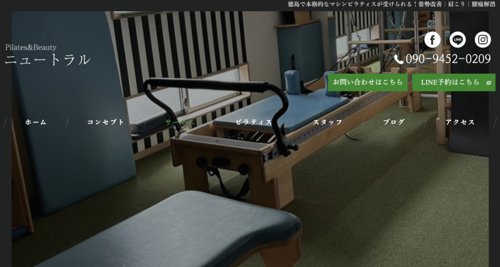 Pilates & Beauty ニュートラルは、徳島県石井町にある完全プライベート制のピラティス&ビューティースタジオです。まず強みとして挙げたいのは「マンツーマン × 個室 × マシンピラティス」の組み合わせによって、誰にも見られず自分の身体に集中できる環境を提供している点だと思います。