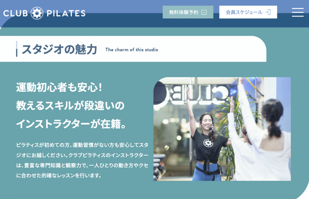 - 女性専用で安心して通いやすく、マシンピラティス特化のプログラムにより身体の変化が出やすい。