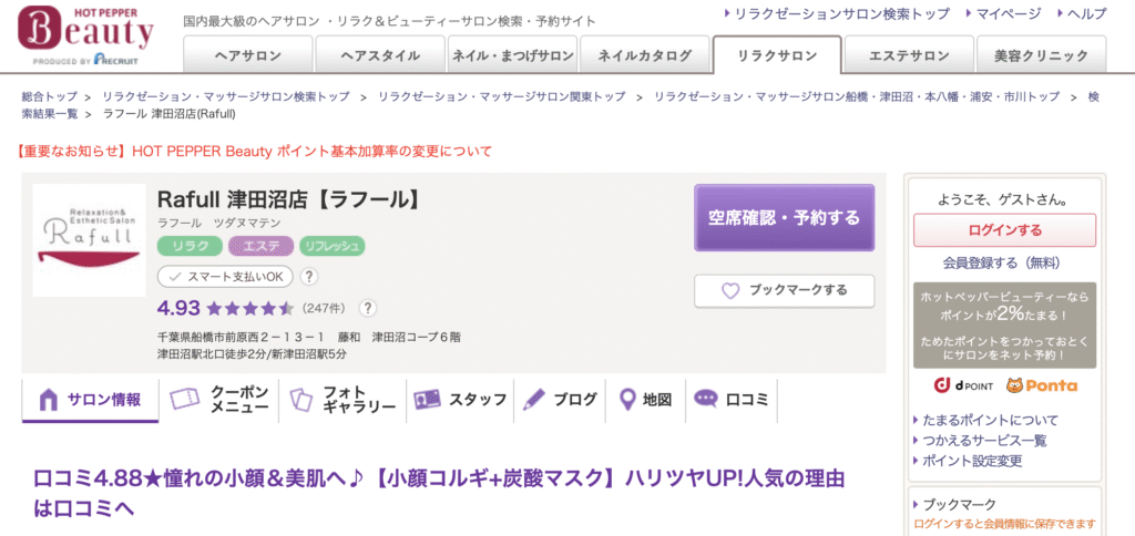 | Rafull(ラフル)津田沼店 | 60分5回の回数券:49,000円 | 9,800円 |