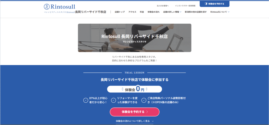 女性専用スタジオはピラティスK 新潟店やRintosull 長岡リバーサイド千秋店などが代表的で、安心して通える環境が整っています。