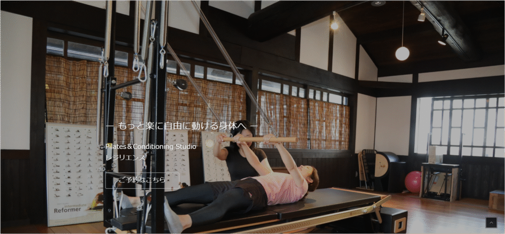 ピラティス レジリエンスはピラティス&コンディションニングのスタジオで、体の自然治癒力や回復力を高めるレッスンを行っています。天井が高く広い和風空間のスタジオは、完全オーダーメイドのプログラムを提供するプライベートレッスンと最大6名のグループレッスンを開催。ピラティスの他、ノルディックウォーキングやトレッキングも楽しむことができます。
