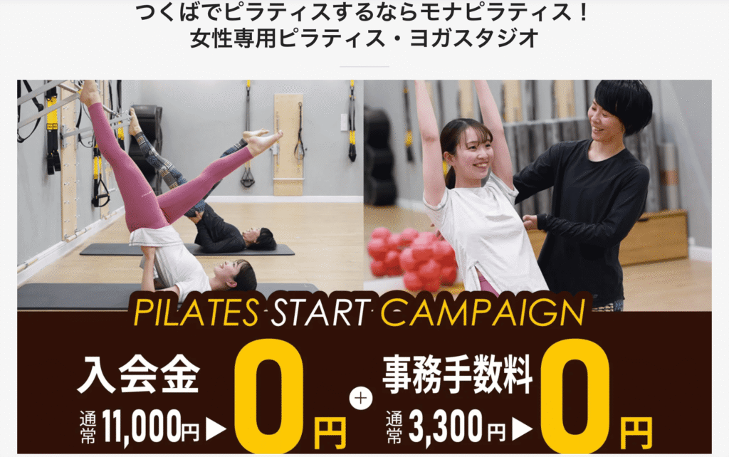 | モナピラティス | 入会金11,000円無料 事務手数料3,300円無料 | 14,300円お得 | WEB予約限定 |